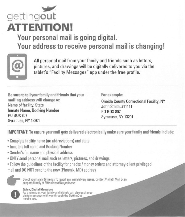 Home / Divisions / Corrections / Mail & Money Order Mail & Money Order Money Orders Only US Postal Money Orders will be accepted, Money Orders from any other source will be returned to sender. Mail Information All mail must be sent to the Digital Mail Center for processing. The following is the format that MUST be used for all mail: Any mail without this address format will be refused by the US Postal Service and returned to the sender.